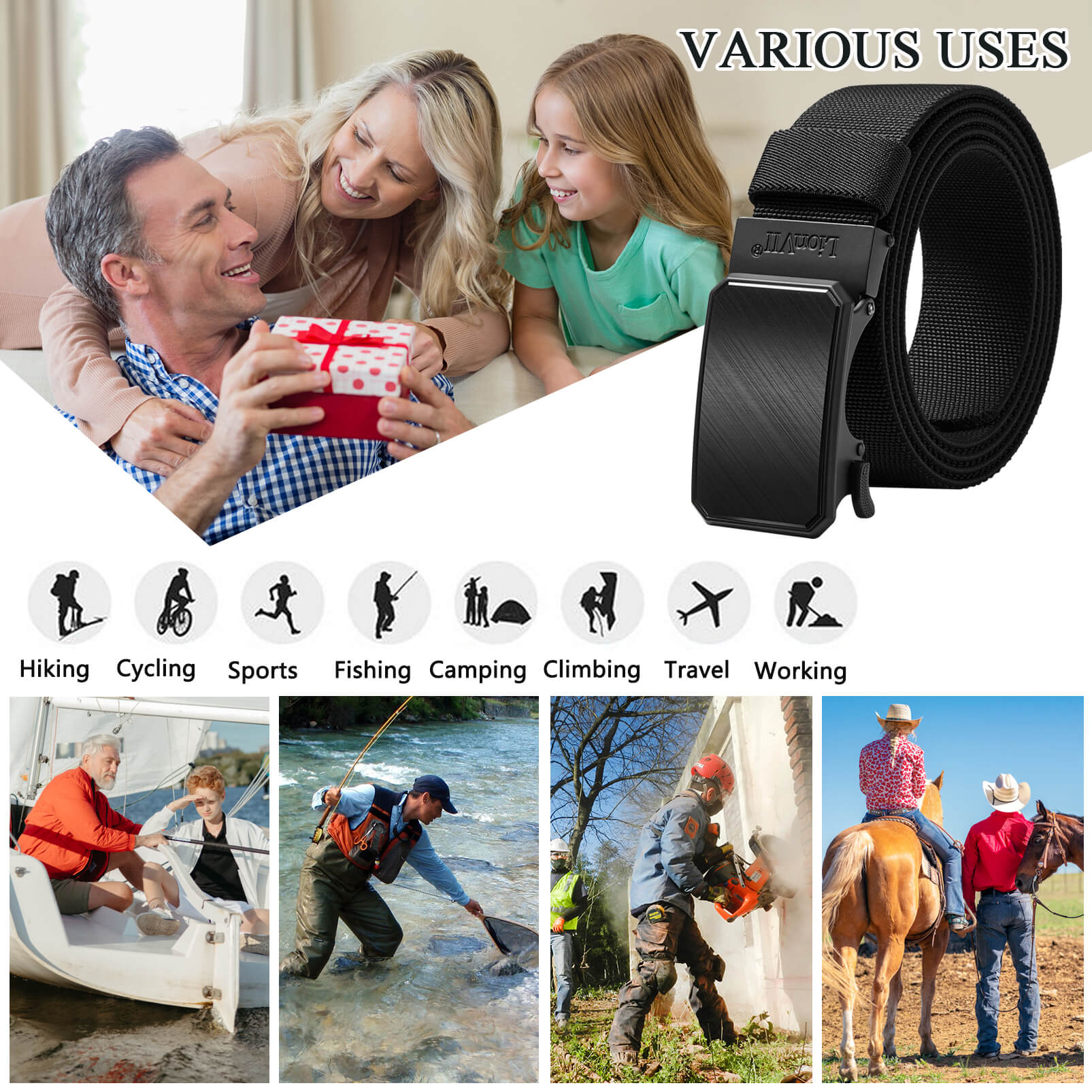 LionVII Ratchet Elastic Stretch Belts, 1 3/8" Belt for Men with Automatic Buckle for Men, Adjustable Trim to Fit 28-49" Waist